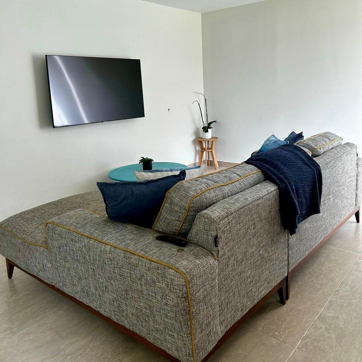 Cuenta con sala, comedor, cocina abierta con isla donde se tiene una amplia y cómoda barra desayunador, en este mismo nivel se cuentan con 2 recámaras, cada una con baño y closet. Acogedora sala de T.V., y la salida a jardín de aproximadamente 80 m2. Salón de juegos, bodega y estacionamiento para 4 autos. Lavandería y cuarto de servicio.